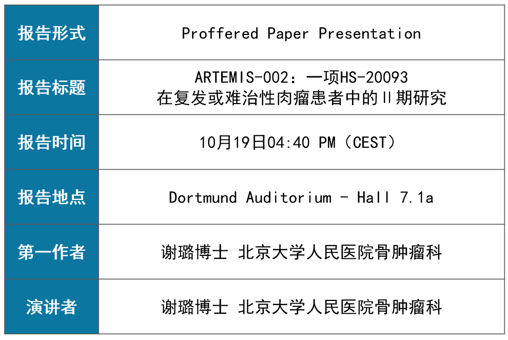 ESMO | k豆钱包HS-20093(B7-H3 ADC)用于复发或难治性肉瘤治疗的II期研究结果入选优选口头报告